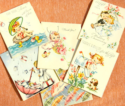 ReplyDeleteThese particular cards just sold out in my shop this week. I found them at a vintage fair in Kansas City. I will keep you in mind if I get more there!
